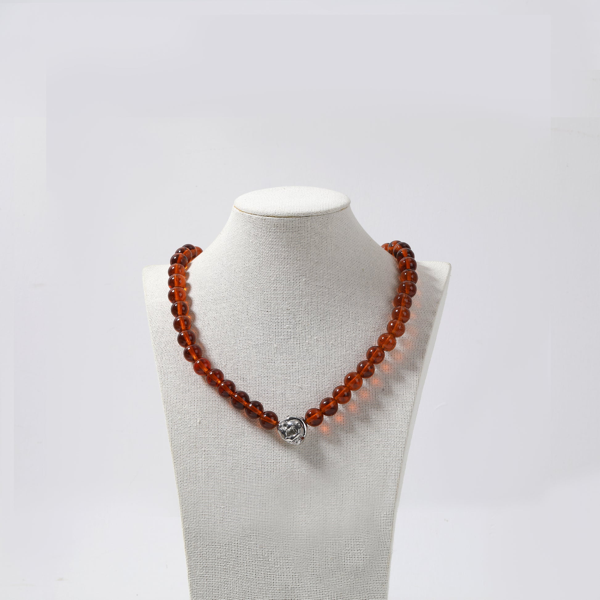 Amber Round Bead Necklace with Silver Shell Pendant