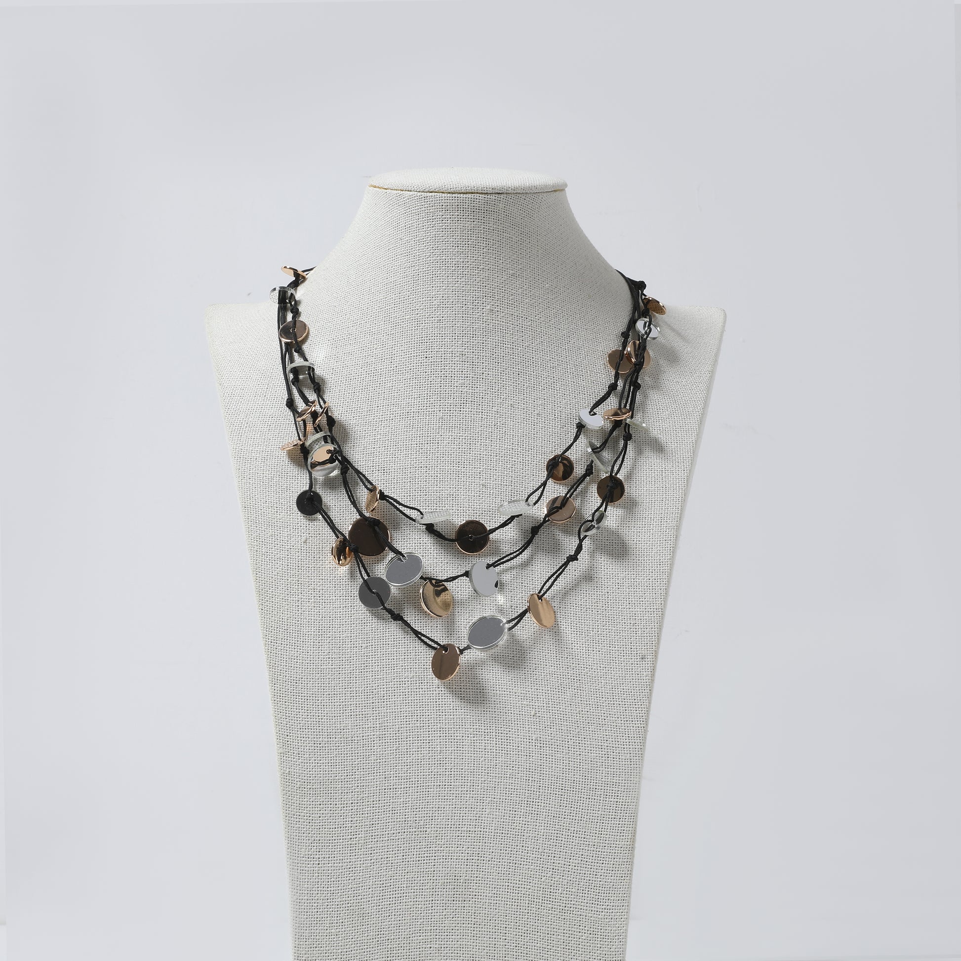 Black Cord & Clear Bead Lariat Necklace