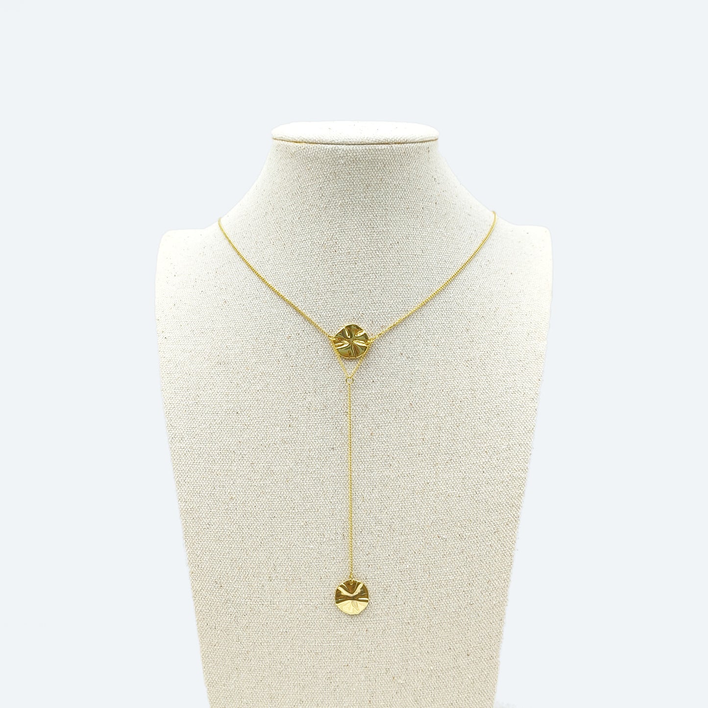 Lariat necklace - Gold plated delicate necklace with textured piece detail