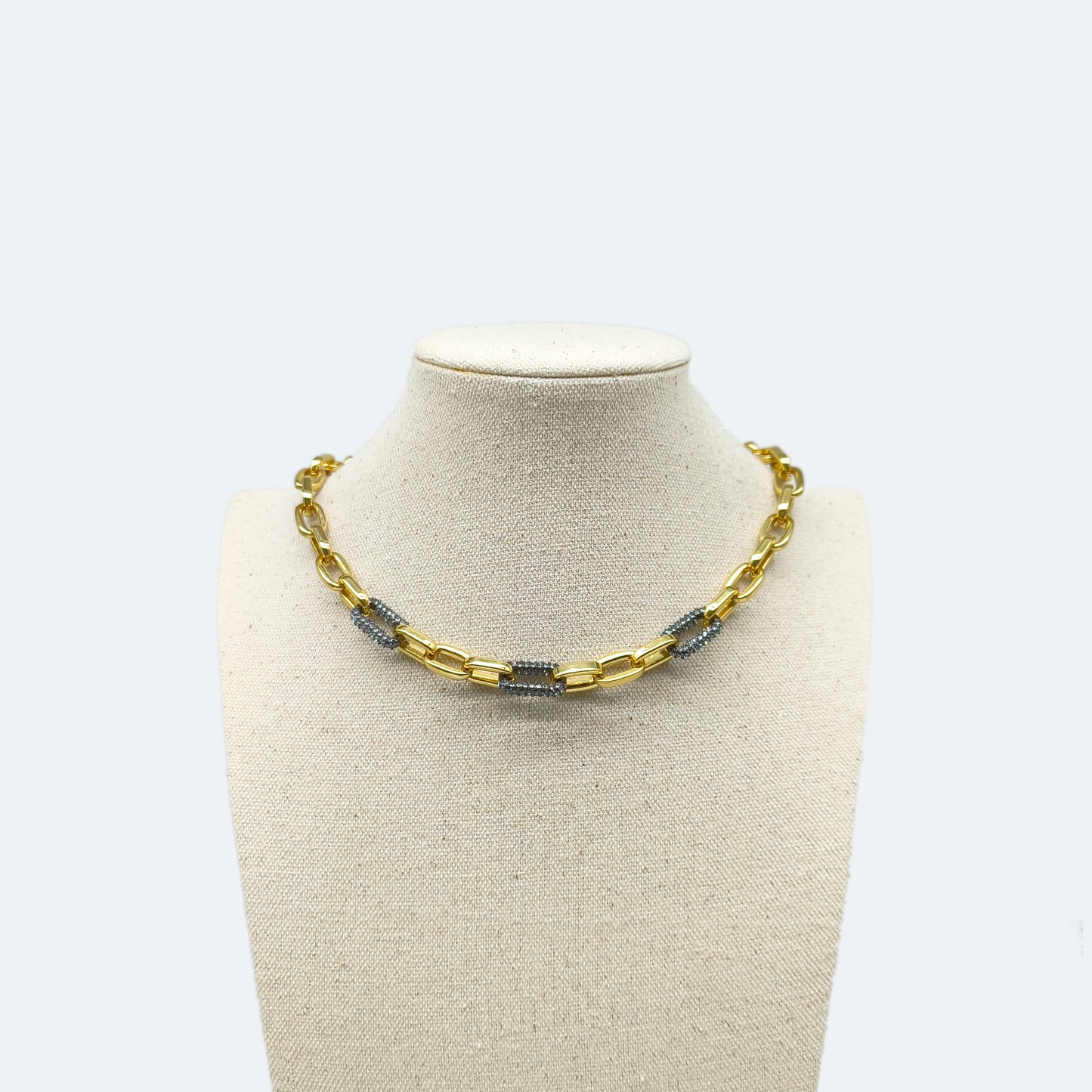 brass chain, brass casting gunmetal link, rhinestone, link chain necklace