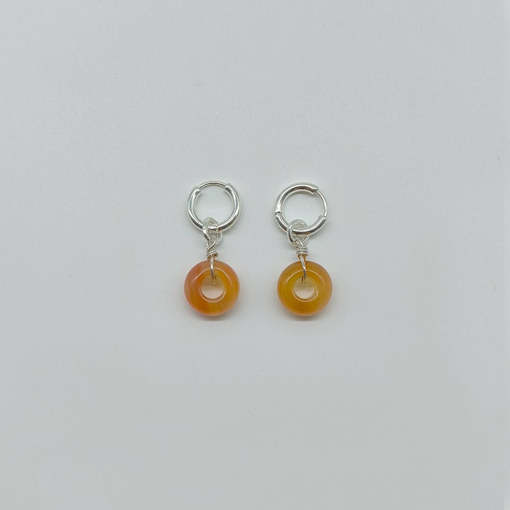 Silver-tone hoops with secure hinge clasp, Natural agate ring-shaped drops