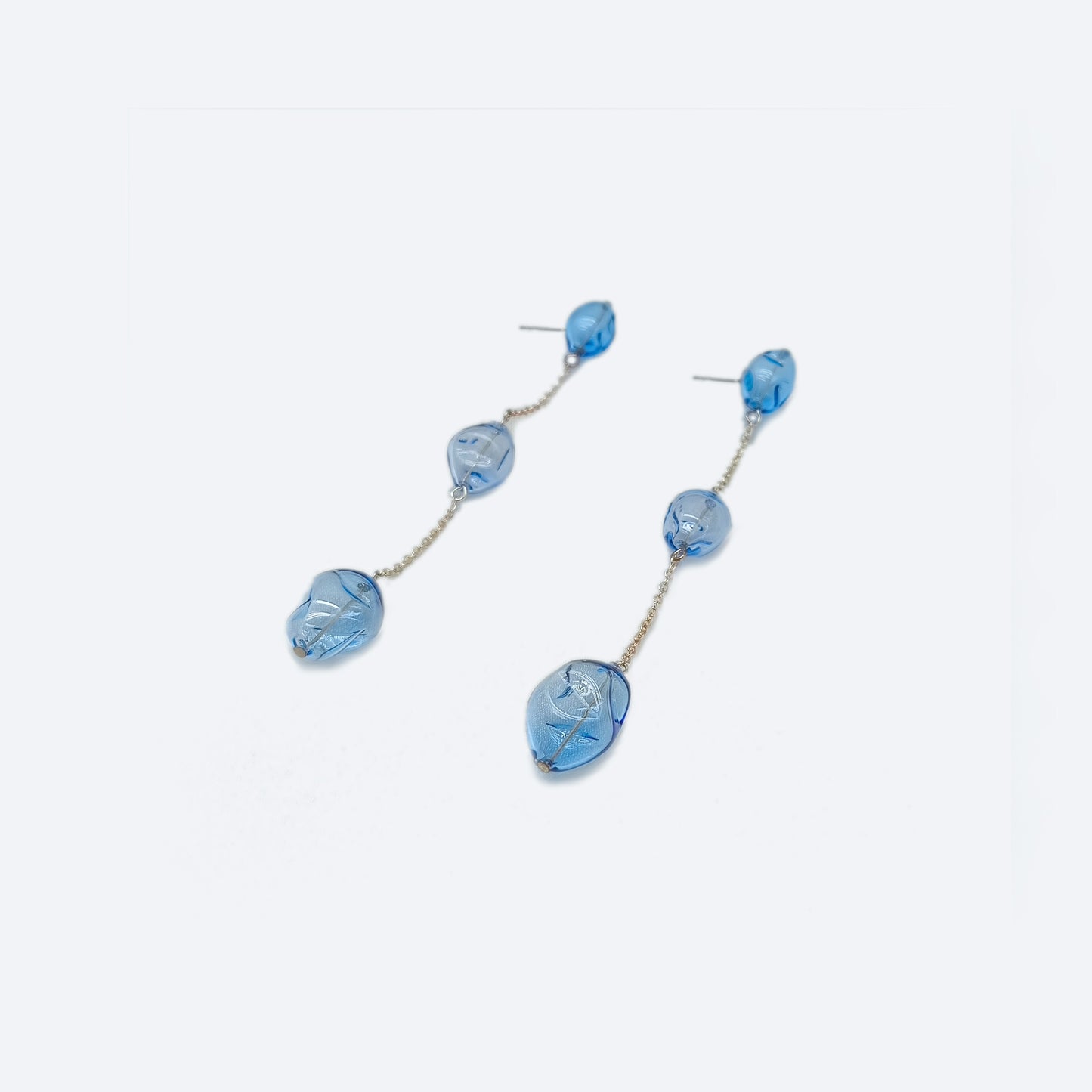 hollow glass, gold plating, thin long chain dangle earring