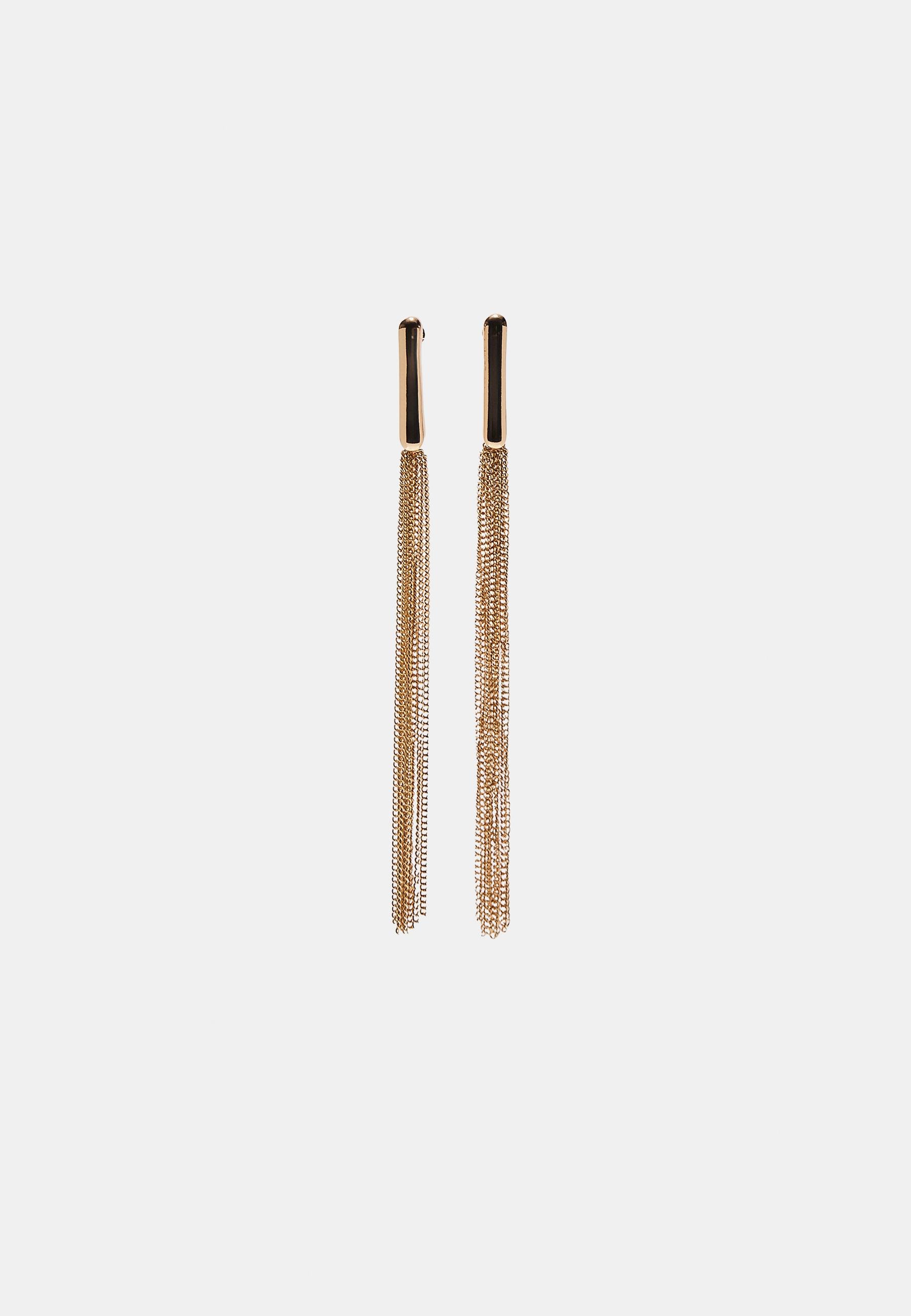 Gold Bar & Long Chain Tassel Drop Earrings