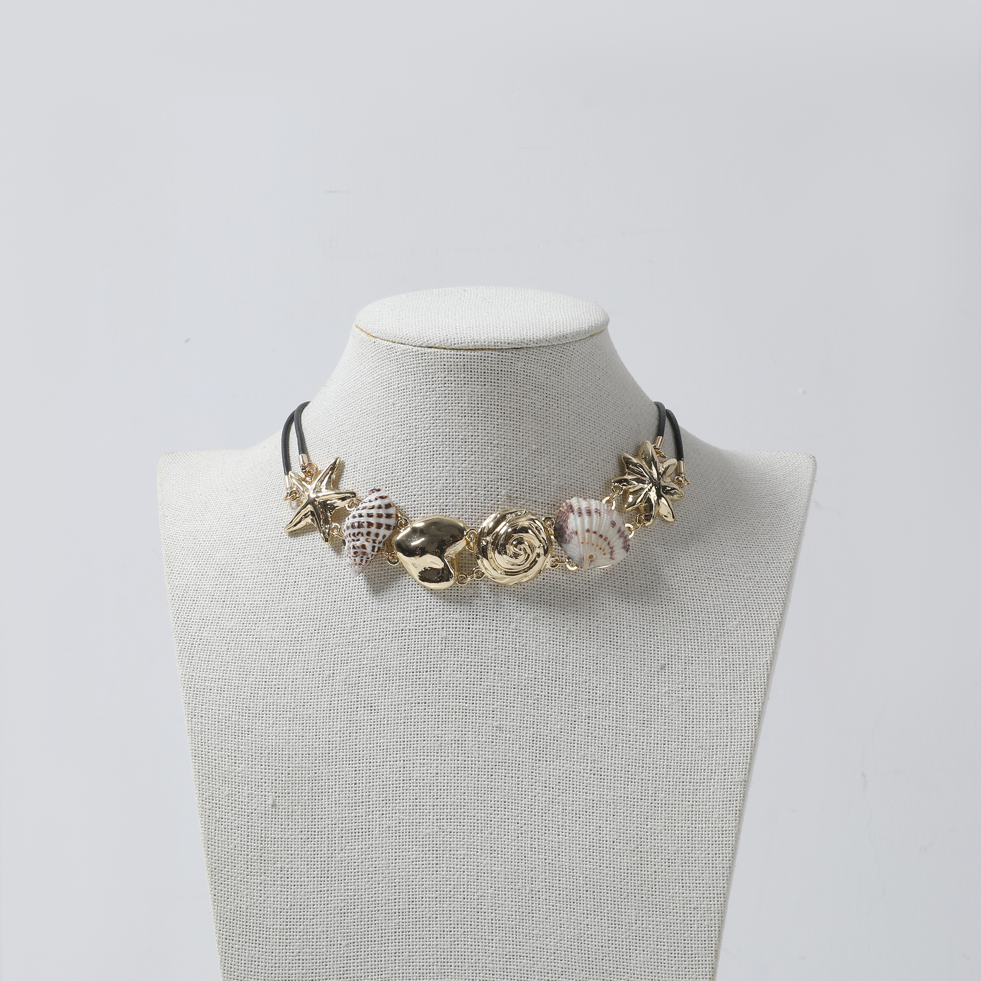Gold Sea Life & Natural Shell Charm Choker Necklace