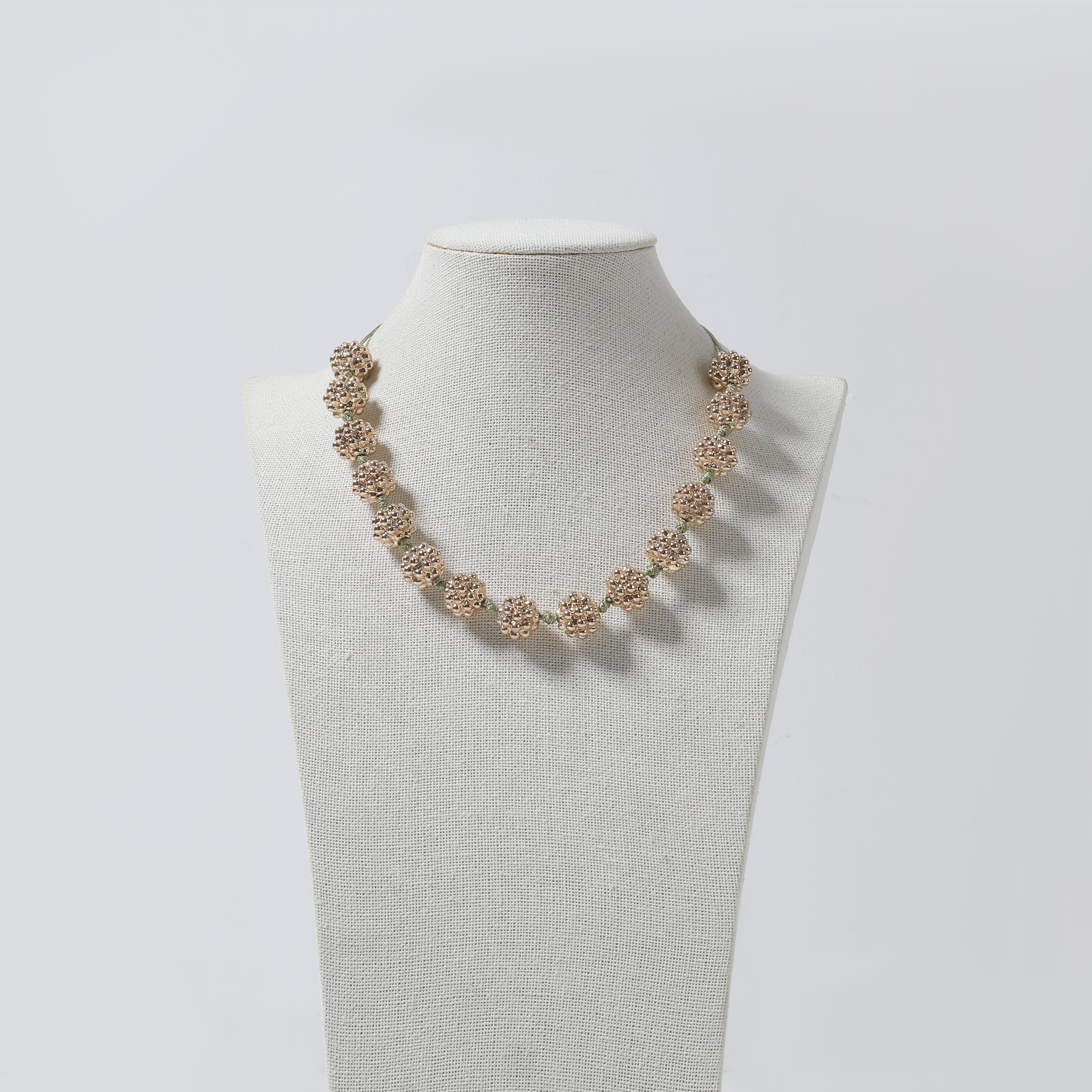 Gold Sparkle Ball Bead & Green Cord Choker Necklace