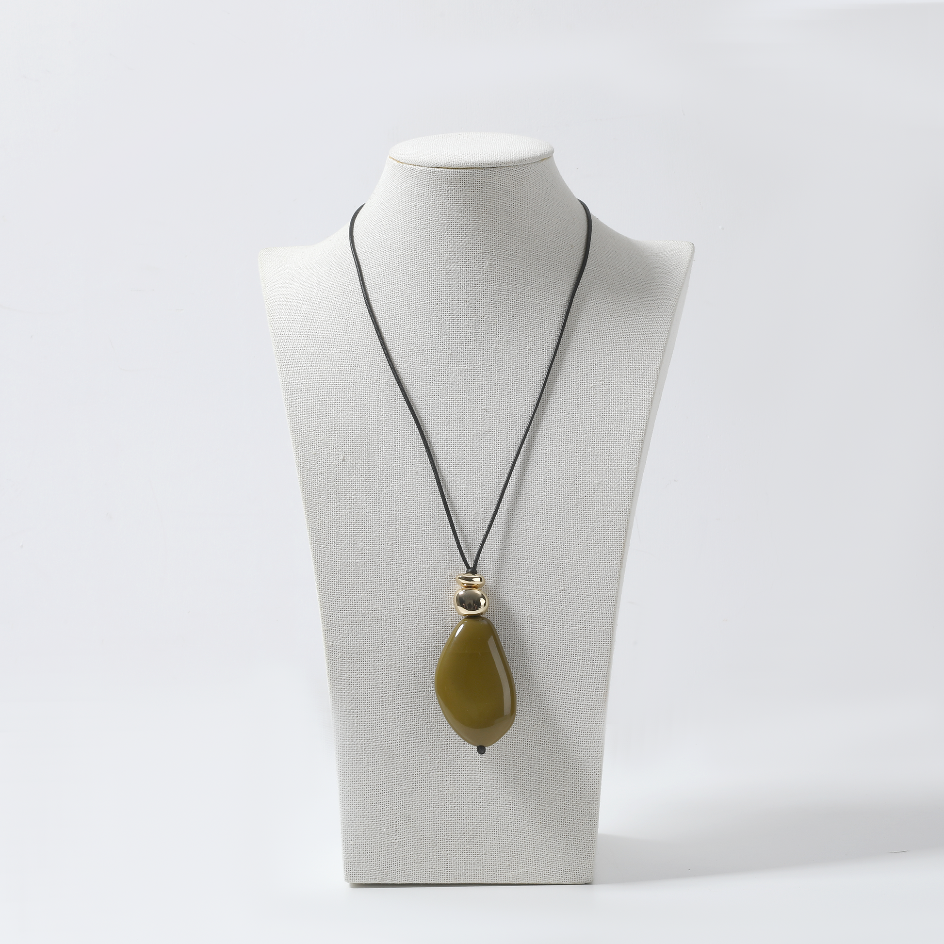Olive Green Teardrop Pendant with Black Cord Necklace