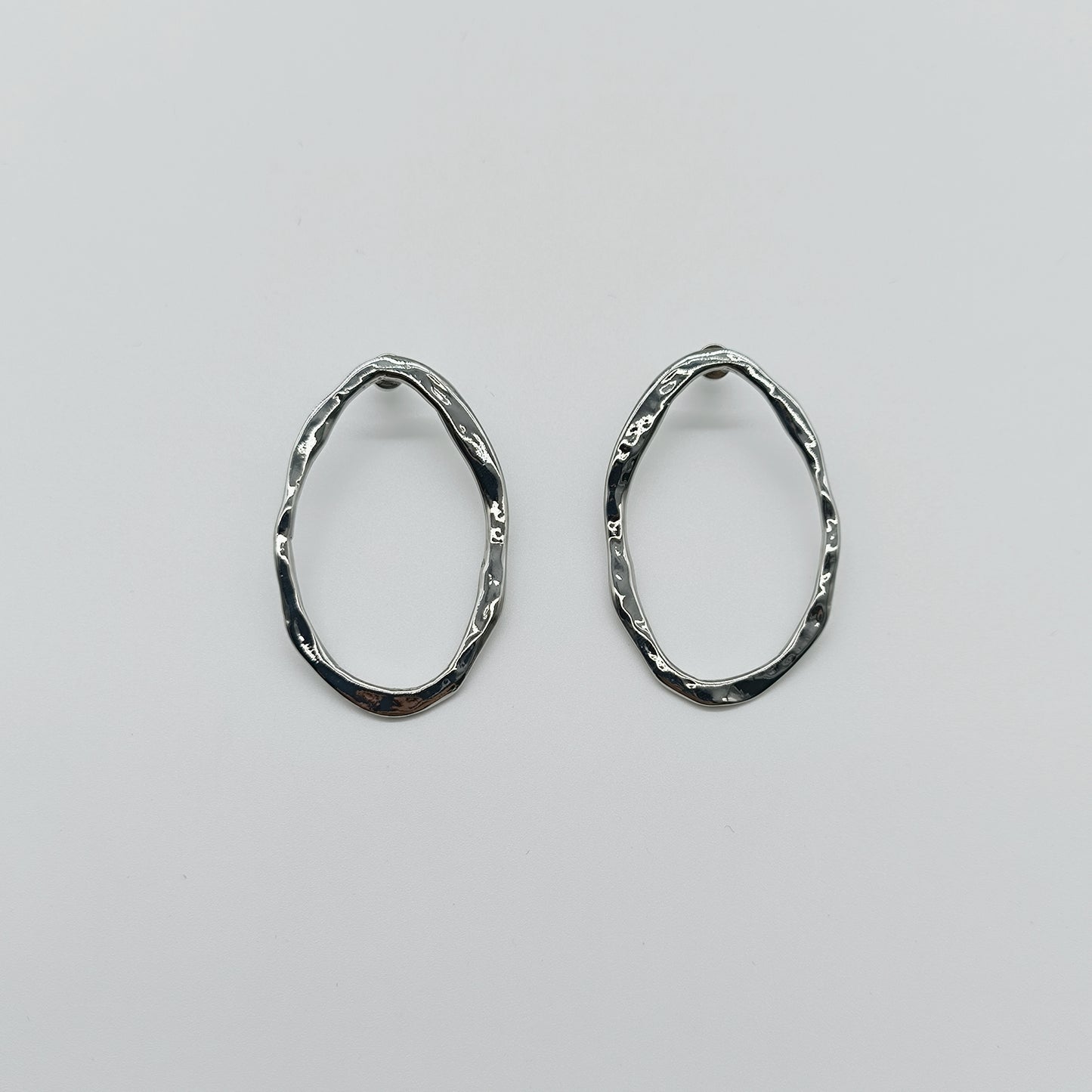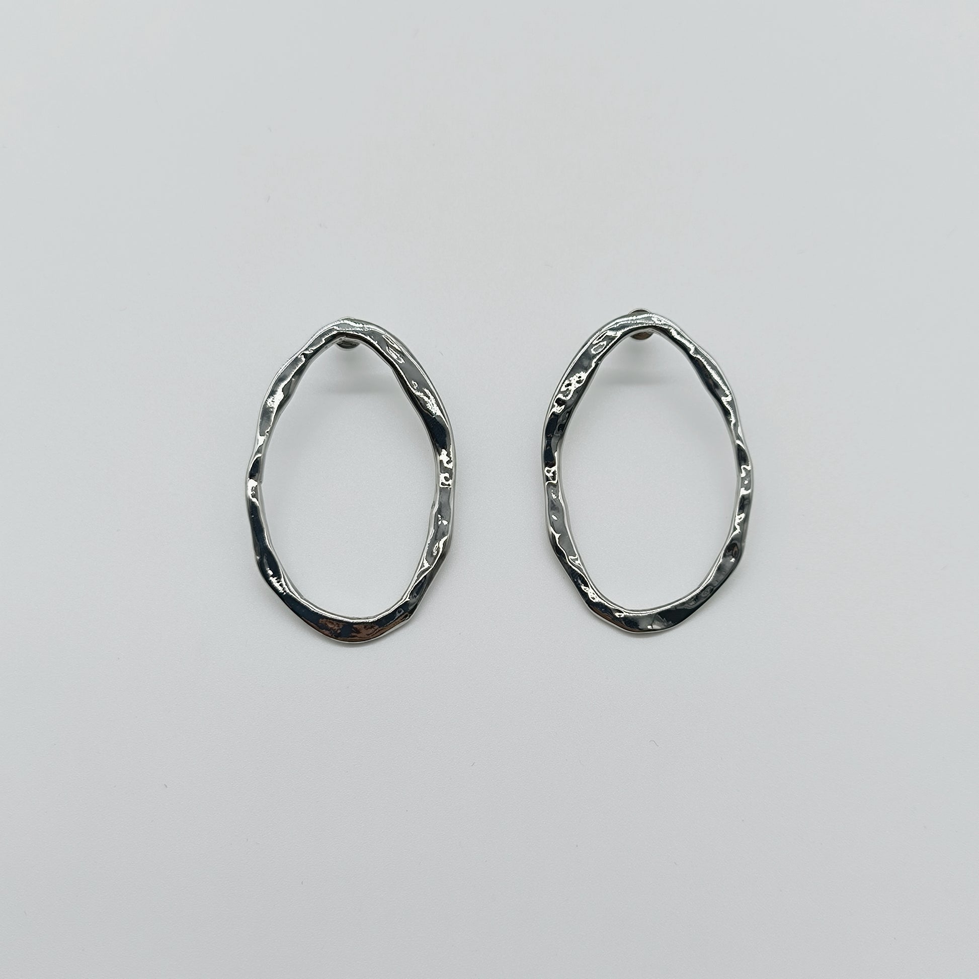 These textured silver oval hoop earrings feature a handcrafted chunky design, perfect for making a bold statement. With a unique, textured silver finish, they add a modern edge to any outfit. Versatile and stylish, these earrings are ideal for both everyday wear and special occasions.