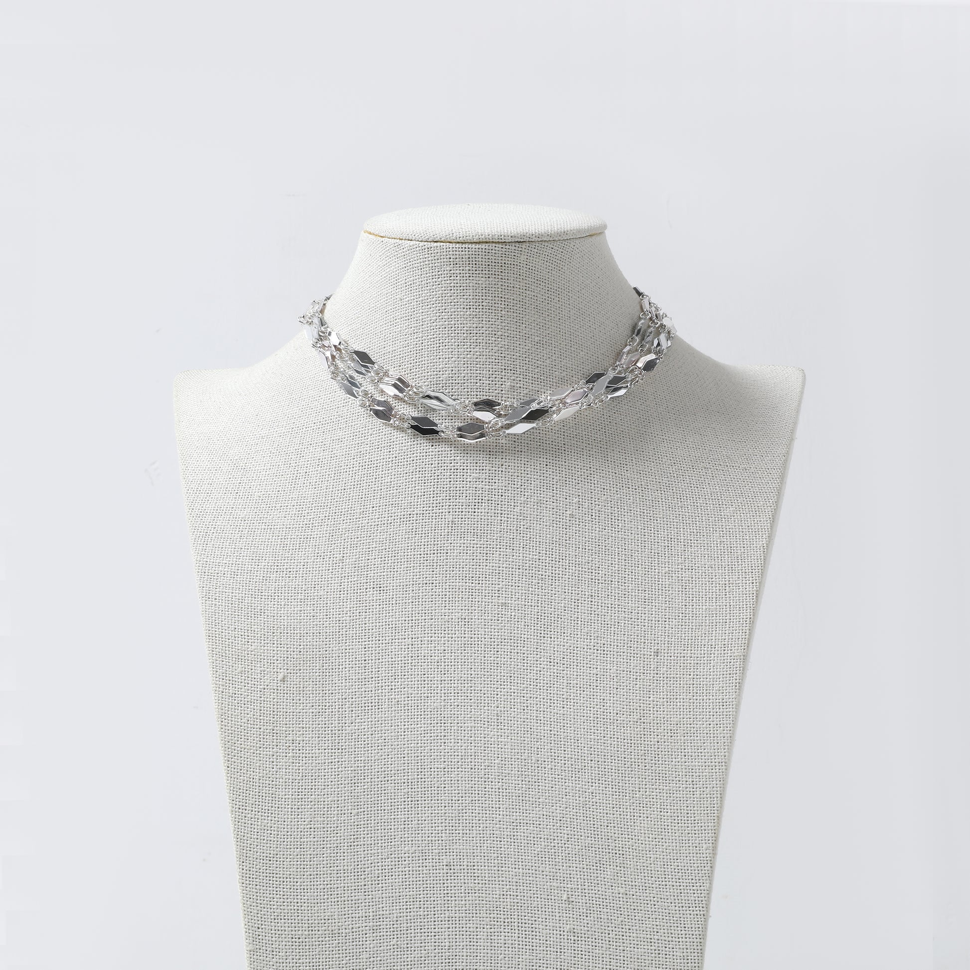 Silver Multi-Layer Geometric Chain Choker Necklace