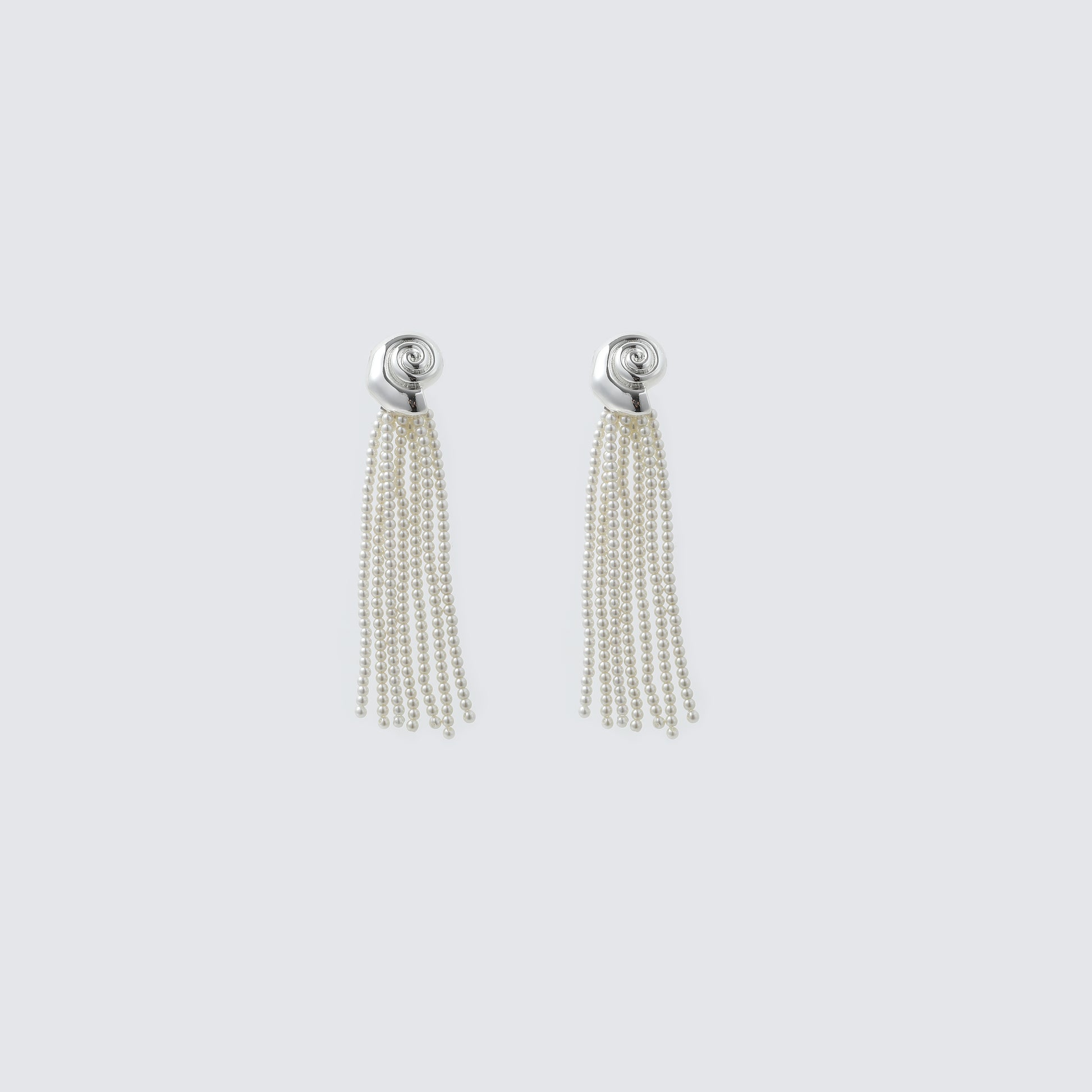 Silver Spiral Top & Pearl Tassel Drop Earrings