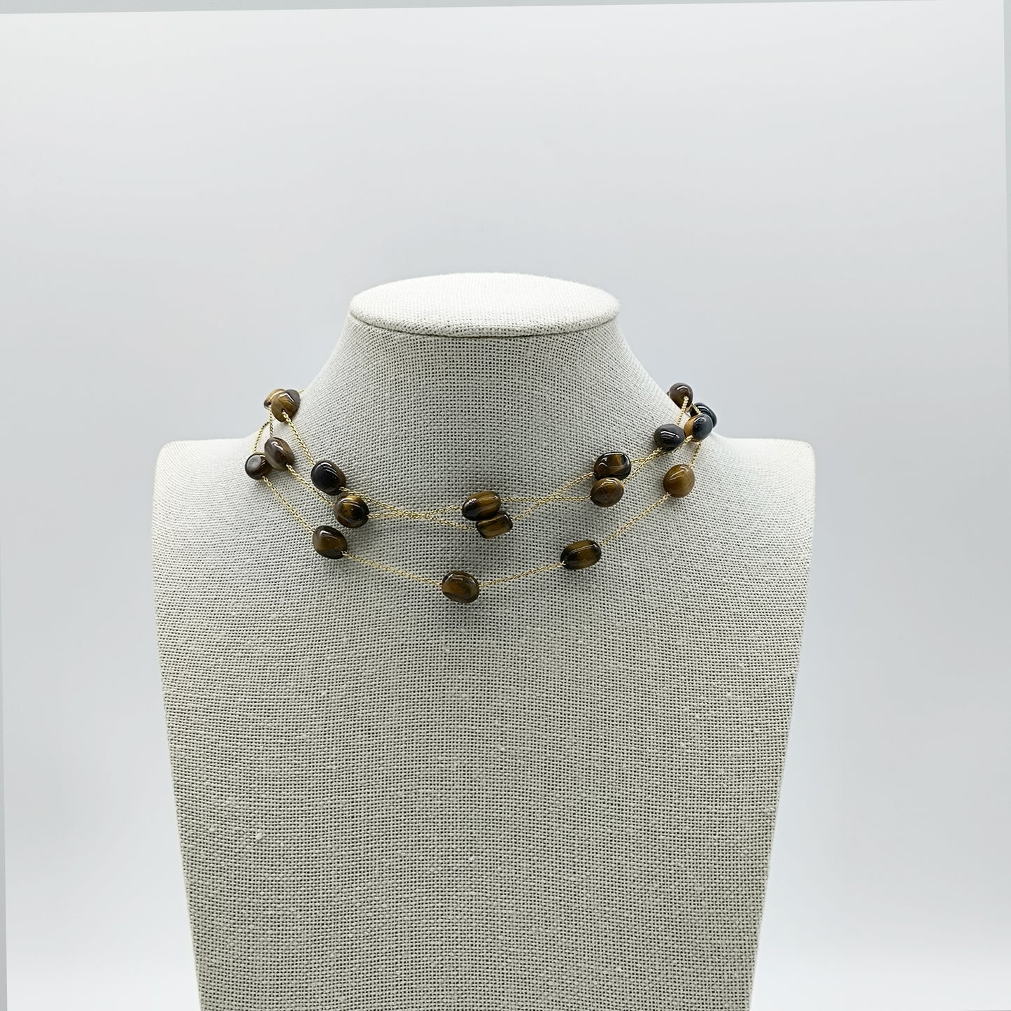 Natural Tiger Eye Beaded Necklace – Delicate Multi-Layer Choker