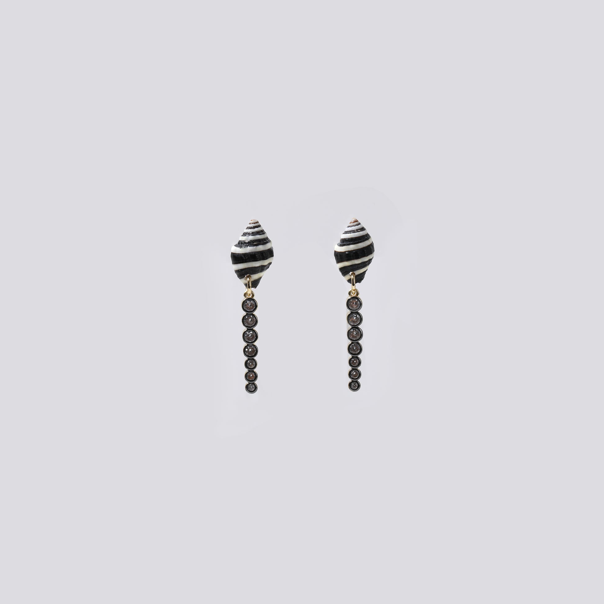 Black-White Striped & Black Rhinestone Drop Earrings